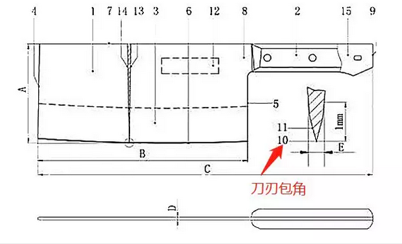 圖:菜刀部件結構示意圖(10-刀刃包角)